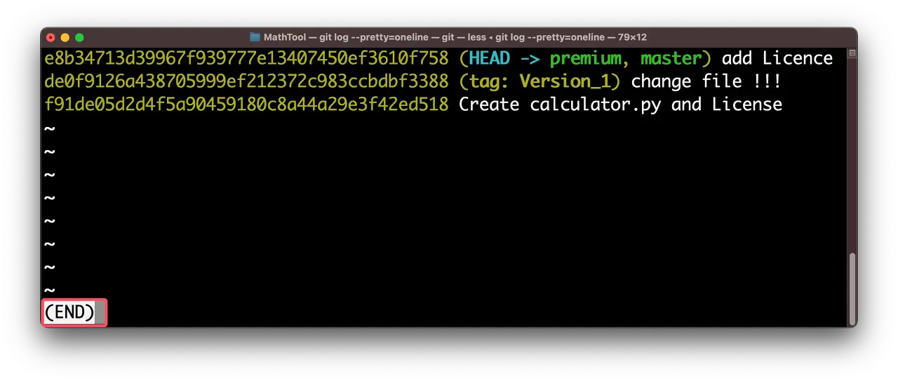 깔끔하게 commit id를 볼수 있는것은 좋은데 불편한것은 마지막에 (END)라고 나옵니다.