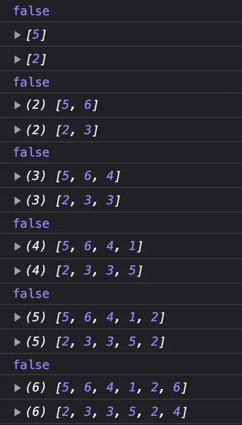 실제로 myHistory변수값을 prev변수에 넣고, myHistory.push()다음에 console.log(prev === myHistory)를 비교해보면 결과는 true가 나옵니다. (이것은 원소들이 같다고 true나오는것이 아닌, 참조하고 있는 주소값이 같아서 true가 나온것 입니다.)