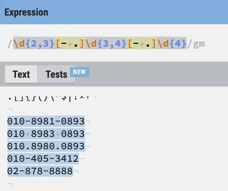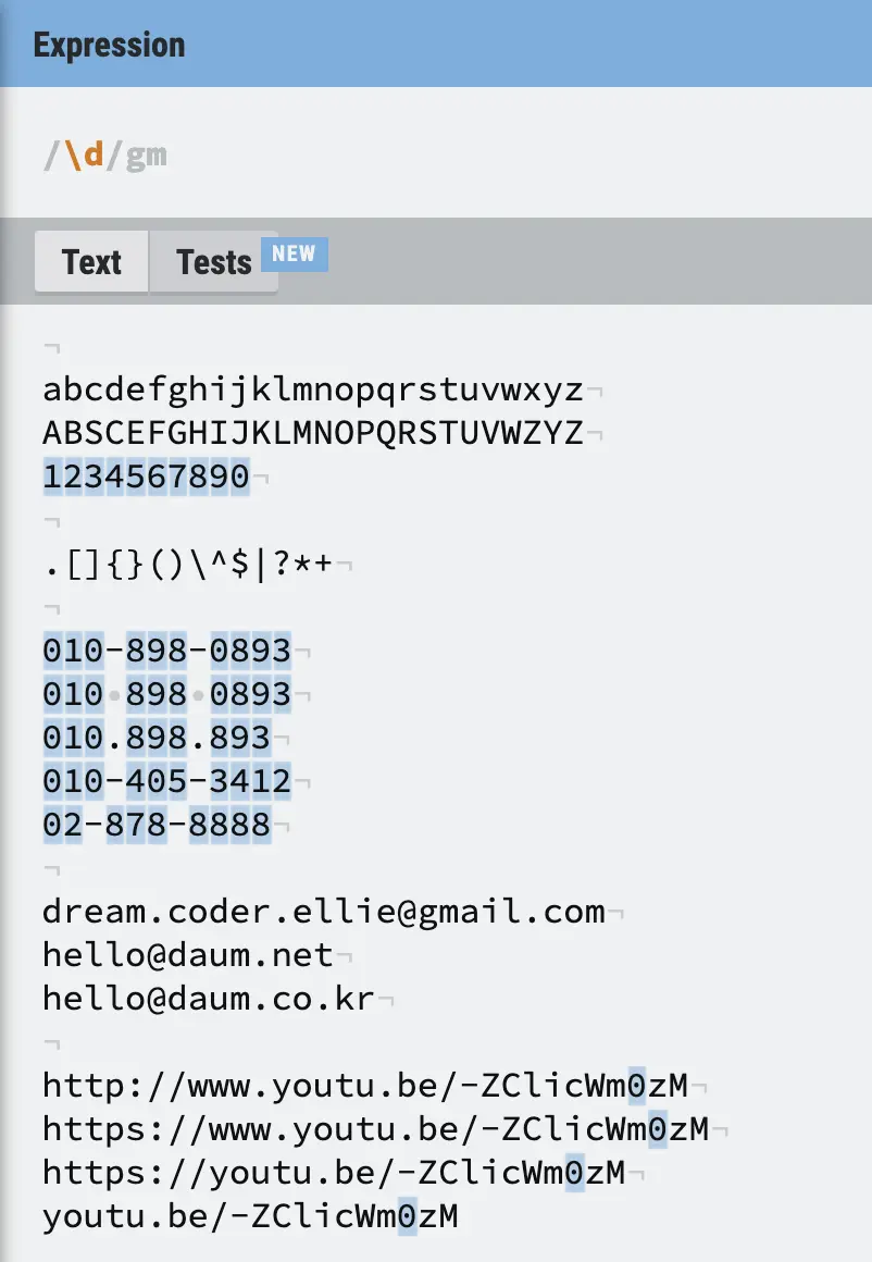 - \d digit 숫자 - 숫자 전체를 찾는다.