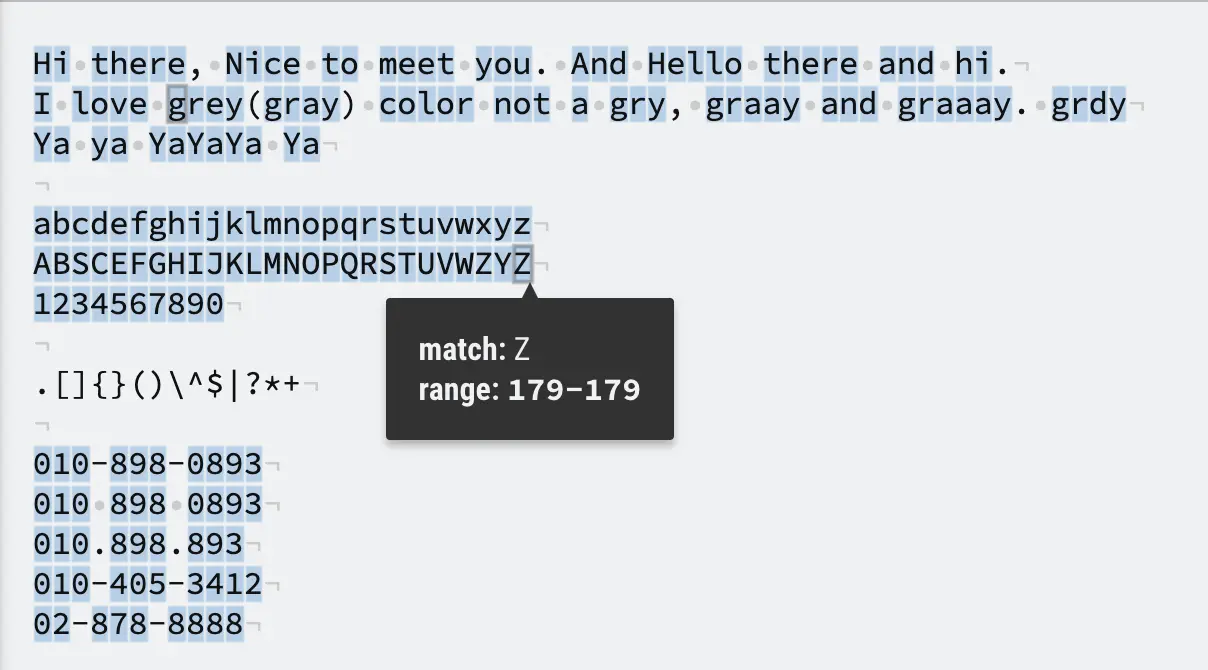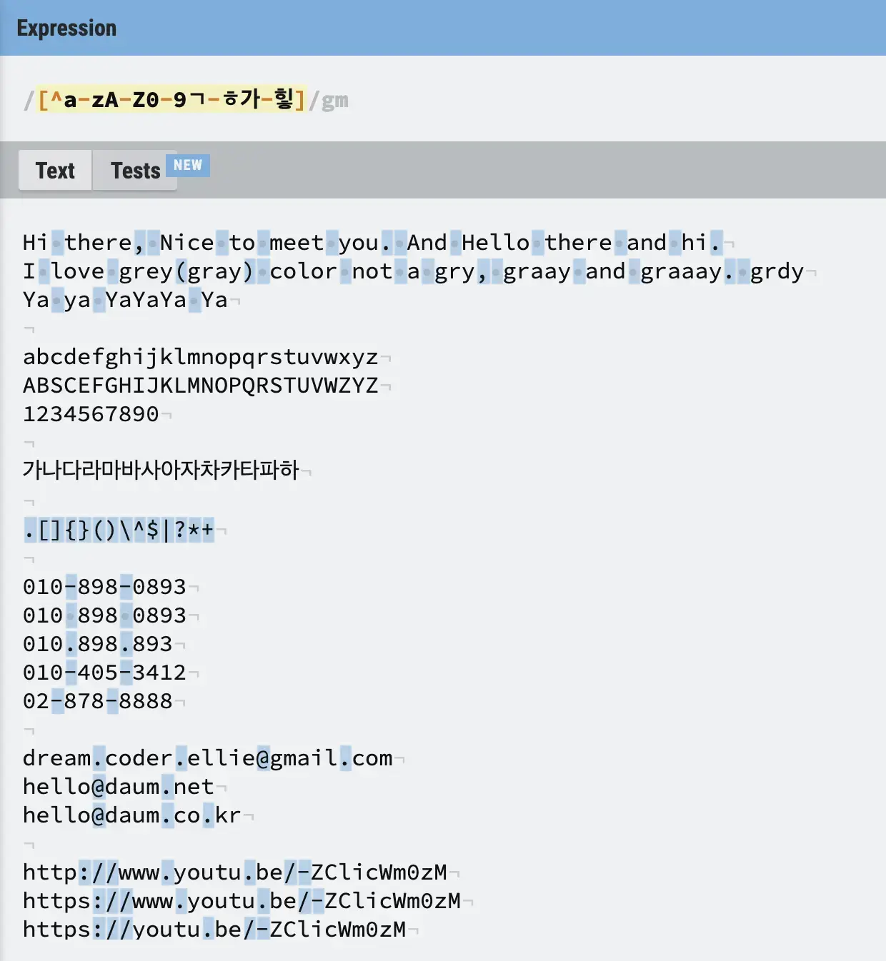 - \S space 공백 아님 - 띄어쓰기를 제외한 모든 것들을 찾는다.