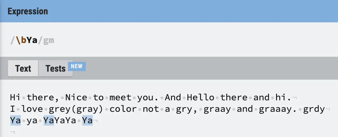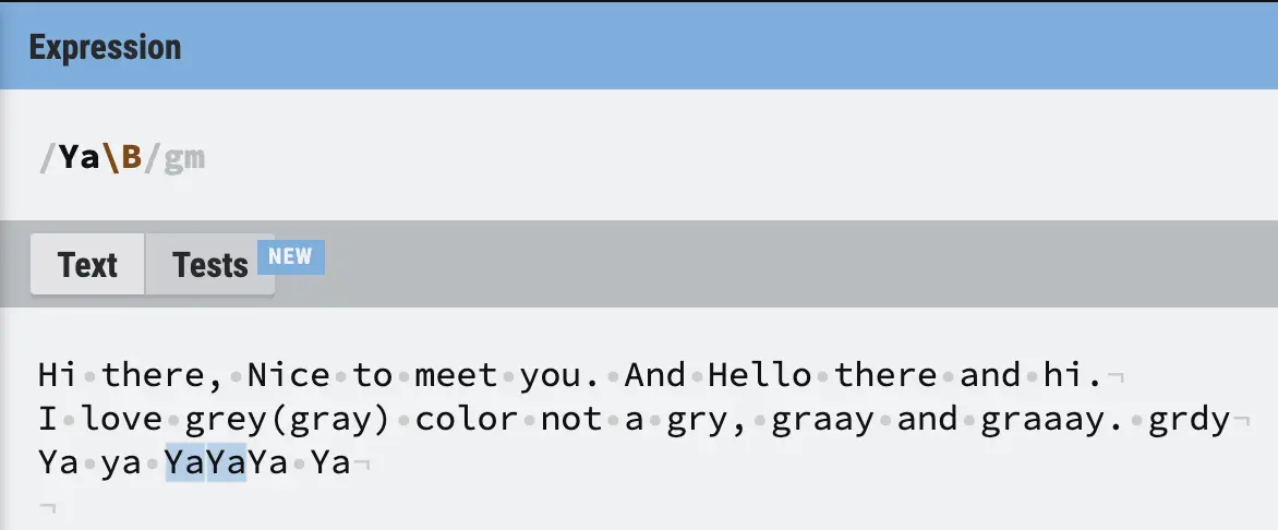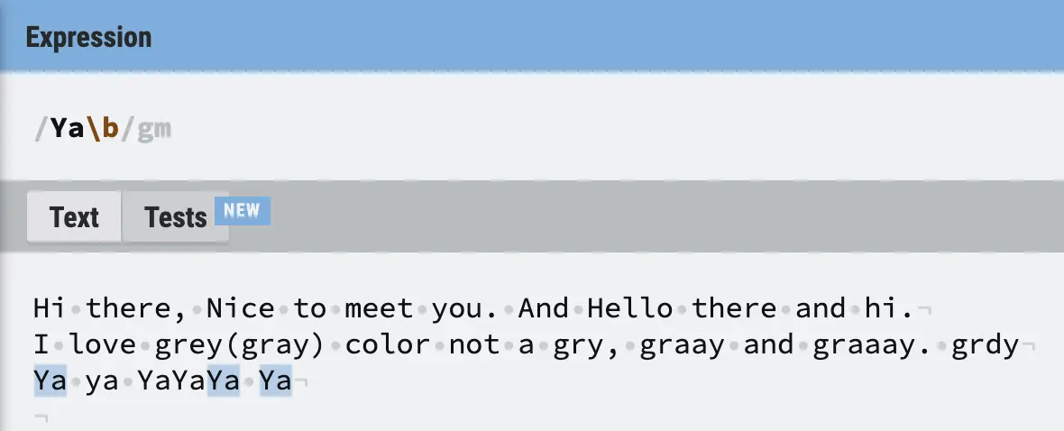 (YaYaYa라는 문자열 뒤에 'Ya\b'를 쓰면 YaYaYa중에서 단어 뒤에서 쓰이는 Ya만 선택해서 찾을 수 있습니다.)