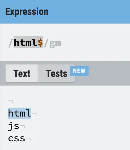 const regexr =/html$/gm // 'html'로 끝나는지 검사