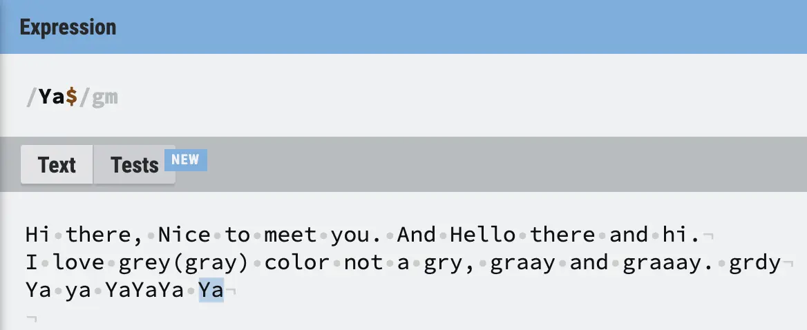 (YaYaYa라는 문자열 $를 쓰면 문장 뒤에서 쓰이는 Ya를 찾을수 있습니다.)