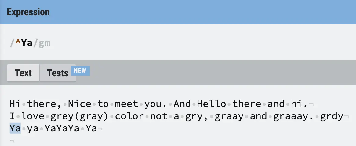 (YaYaYa라는 문자열 ^를 쓰면 문장 앞에서 쓰이는 Ya를 찾을 수 있습니다.)