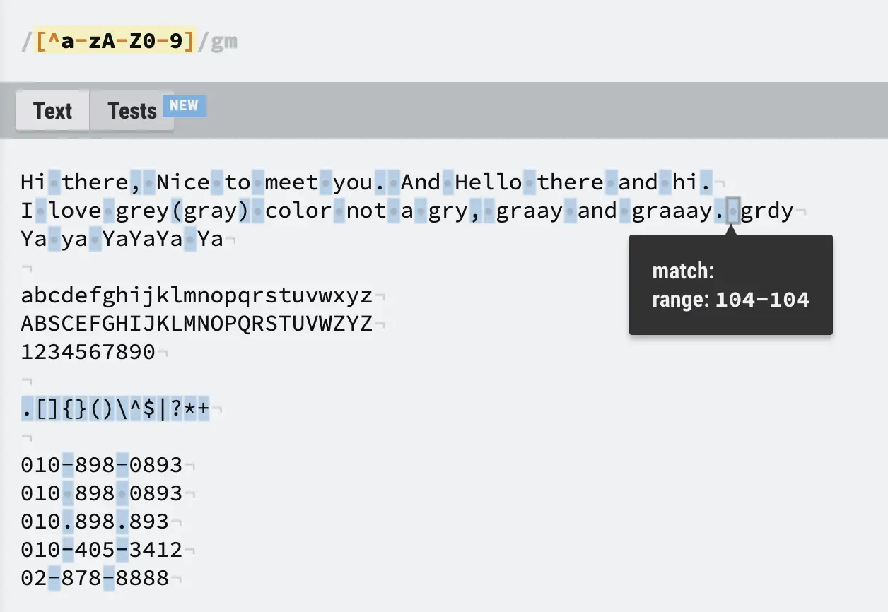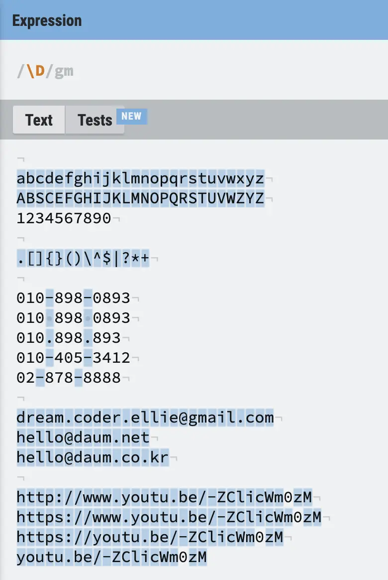 숫자가 아닌 다른 모든 것을 찾을 경우 '\D'를 써서 찾을 수 있습니다.