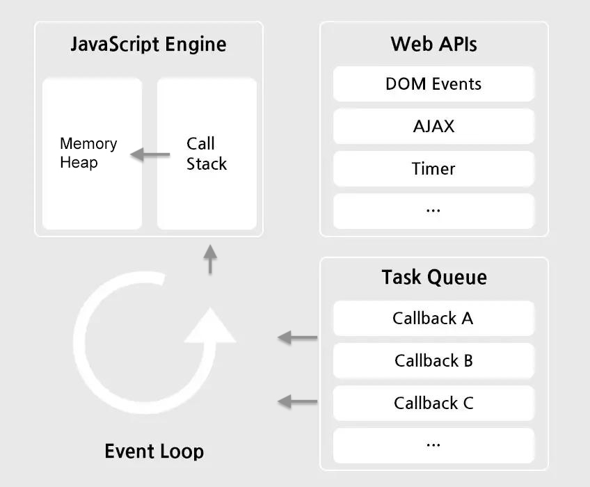 - Web API: 웹 브라우저에서 제공하는 API로 AJAX나 Timeout등의 비동기 작업을 실행