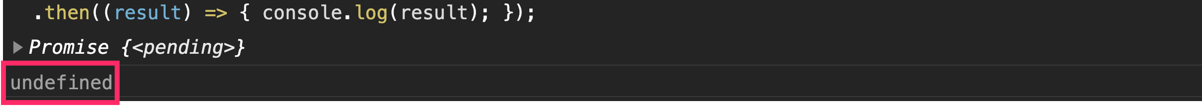따라서 세 번째 then 메소드의 콜백으로 undefined가 넘어가고, 그래서 위 이미지에서 보이는 것처럼 undefined가 출력된 겁니다.
