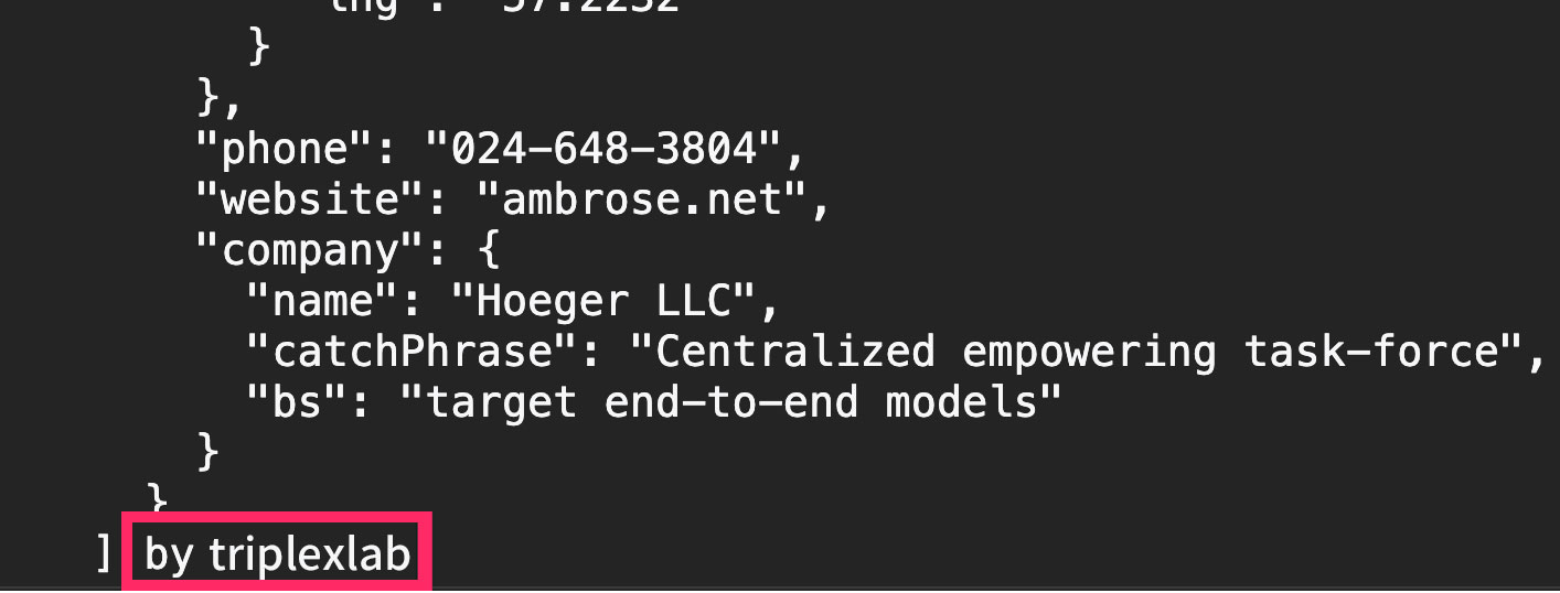 리스폰스의 내용 맨 마지막에는 by triplexlab이라는 문구가 잘 붙어서 출력되는 것을 알 수 있습니다.