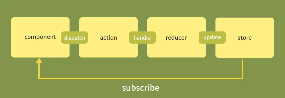 dispatch가 Reducer를 불러서 current state와 그리고 네가 보낸 action을 더해서 store에 저장해놓습니다. 그리고 만약에 state가 변경되었을때 store에서 감지하고 싶다면 subscribe함수를 사용하면됩니다. 그래서 언제든지 store에 state가 바뀌었을때 화면에 데이터를 출력할수 있습니다.