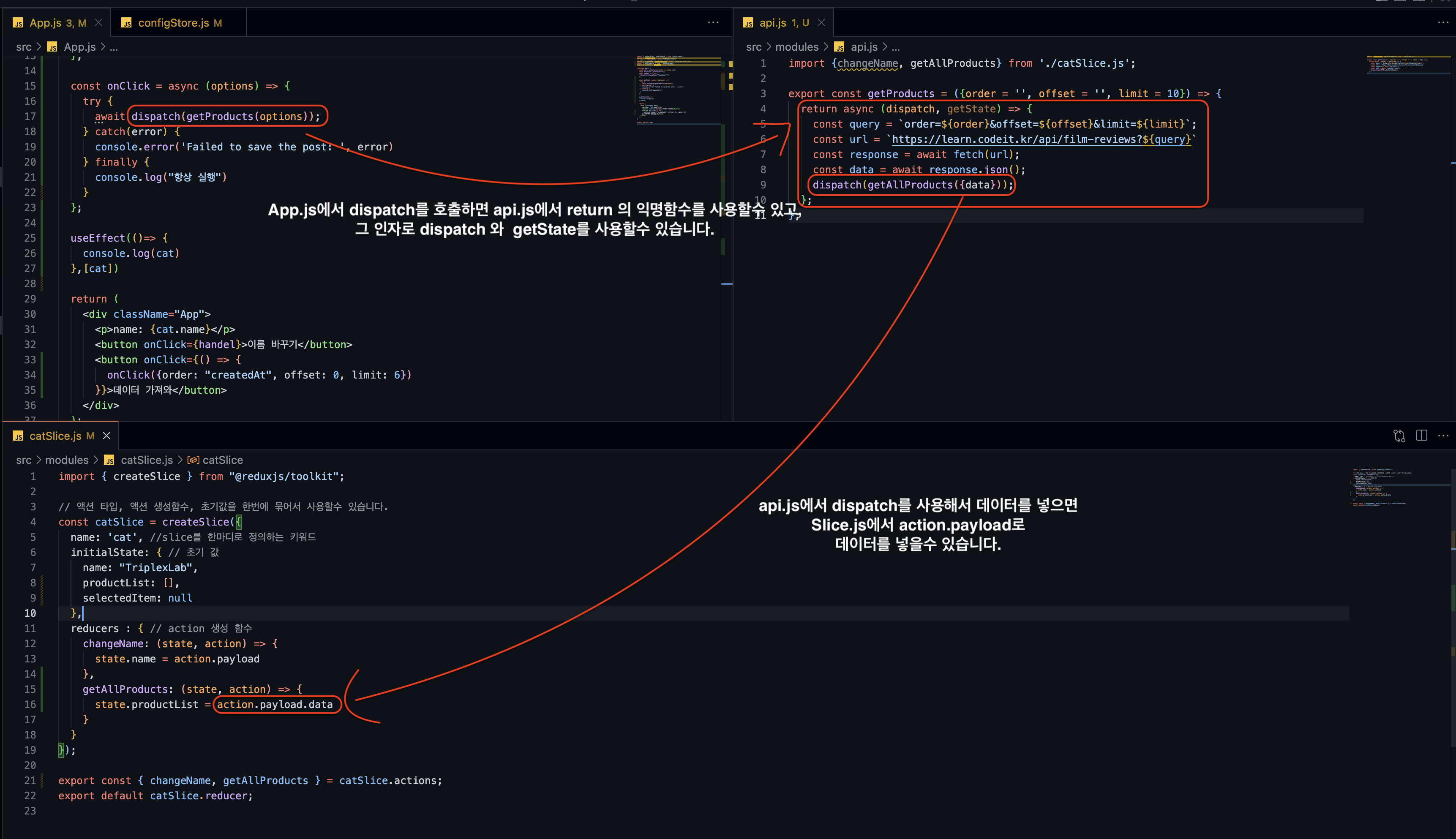 cat: catReducer //Slice를 만든 Reducer을 추가해줍니다.