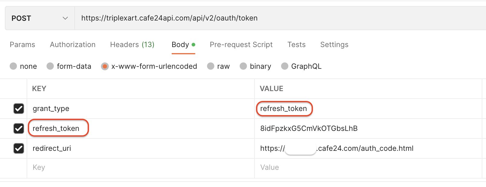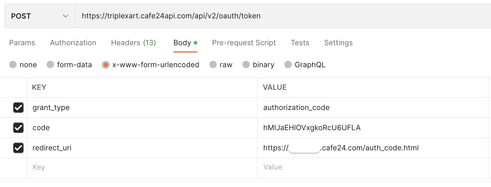 body에 grant_type, redirect_uri, 아까 발급받은 code를 넣어줍니다.