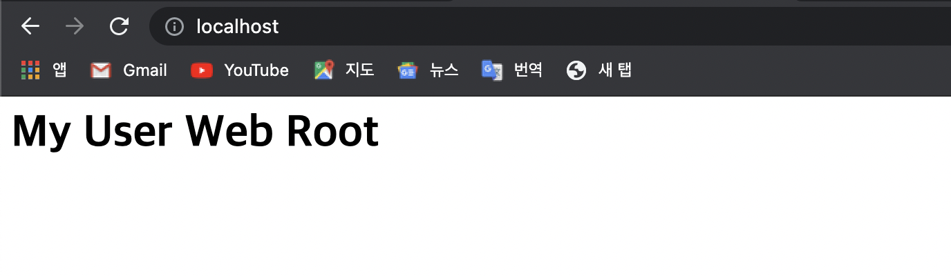 http://localhost:80 브라우저에 접속하면 "My User Web Root"라는 간단한 헤더가 표시되어야 합니다.