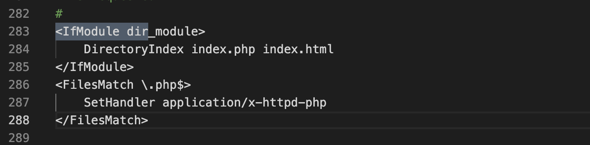 PHP용 디렉토리 인덱스를 명시적으로 설정해야 하므로 다음 블록을 변경해줍니다.