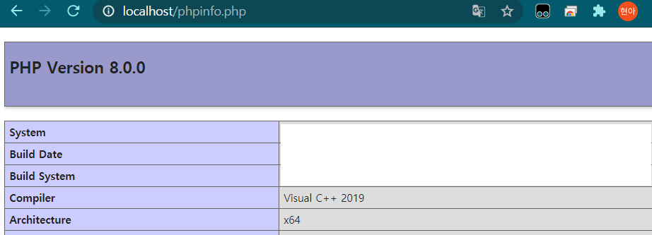 http://localhost:80 브라우저에 접속하면 phpinfo 내용이 나옵니다.