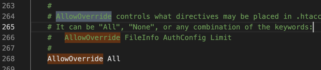 🛠 동일한 Directory블록에서 AllowOverride 설정을 다음과 같이 변경해 줍니다.