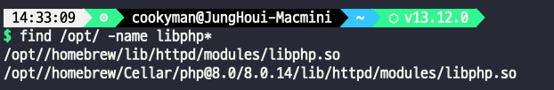 아파치 설정 파일(/opt/homebrew/etc/httpd/httpd.conf)에서 libphp.so 경로를 수정 합니다.