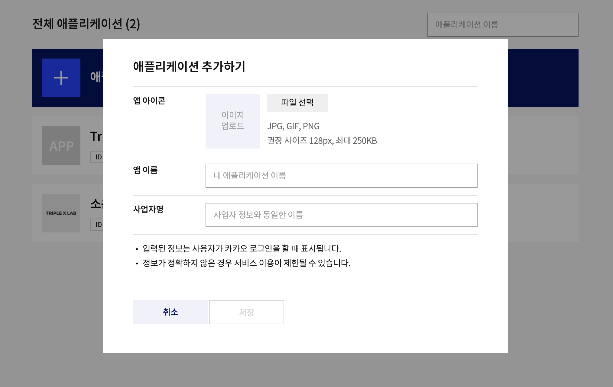 로그인 후 > 내 애플리케이션 탭을 클릭합니다.
